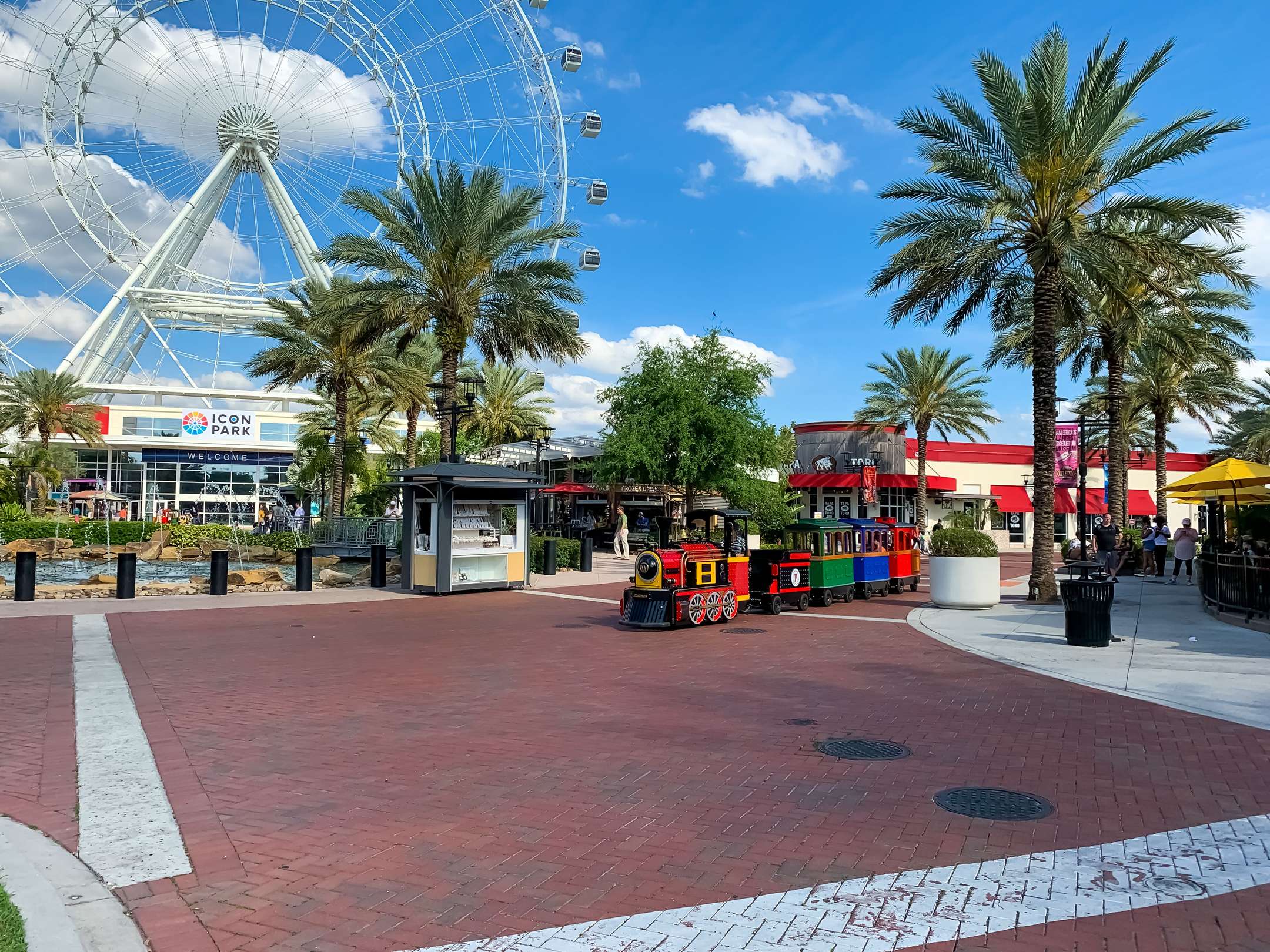 By Train: You can reach Icon Park by the Sunrail, which is the only train that goes to Icon Park.Rules:Alcoholic beverages that are not purchased at the wheel are prohibited. Recreational devices like remote control toys, Drones, Scooters, Skateboards, shoes with built-in wheels, inline skates, etc. are not allowed inside the park.